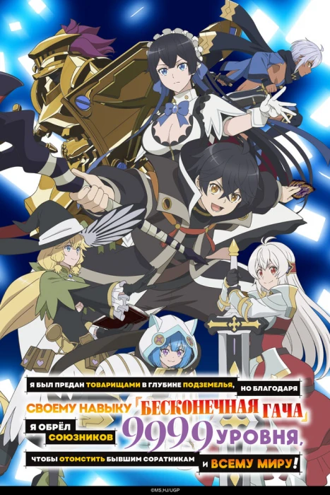 Про что аниме «Я был предан товарищами в глубине подземелья, но благодаря своему навыку «Бесконечная гача» я обрёл союзников девять тысяч девятьсот девяносто девятого уровня, чтобы отомстить бывшим соратникам и всему миру!» (2025)